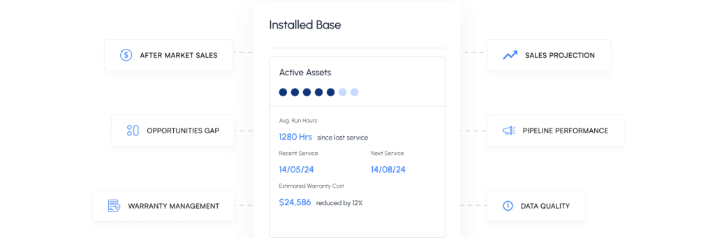 Tracking Installed Base Run hours enables recommended service intervals and timely spare part replacements, driving revenue growth and lowering warranty costs.